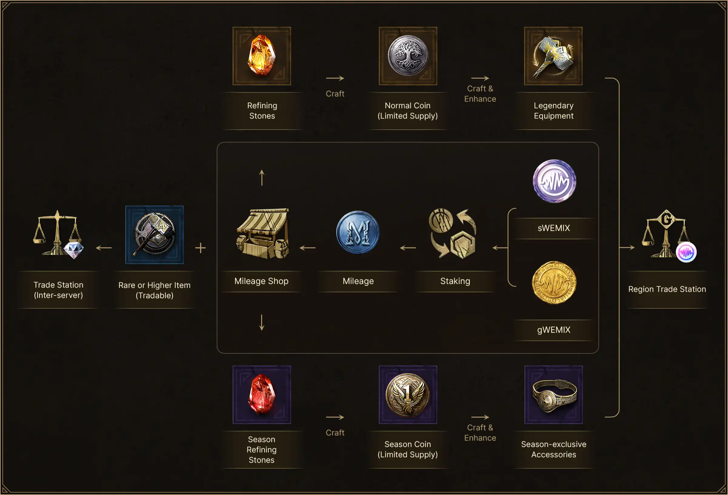 Only high-value items can be registered in the Region Trade Station, and WEMIX is used exclusively as the currency for all transactions.